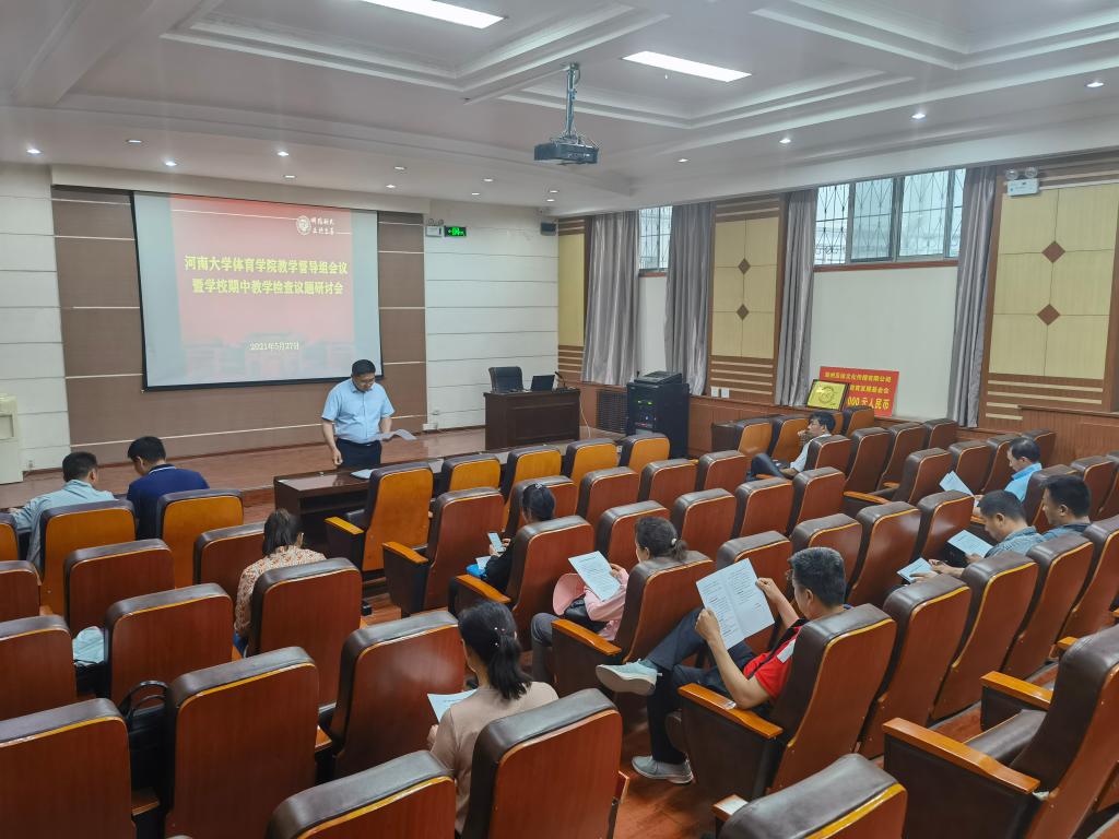2021年5月27日下午,今年会召开教学督导组会议暨学校期中教学检查议题研讨会。研讨会由张大超院长主持。首先,张大超讲述了成立学院教学督导组的意义。根据学院教学实际和发展需要,成立研究生教学督导组、专业体育教学督导组和公共体育教学督导组。教学督导组是一个教学监督、检查、调研、评估、咨询组织(即督教、督学、督管),成立教学督导组能够有效推动今年会本科教学和研究生教学过程管理和质量提升。会上,朱冀宣读了《河南...